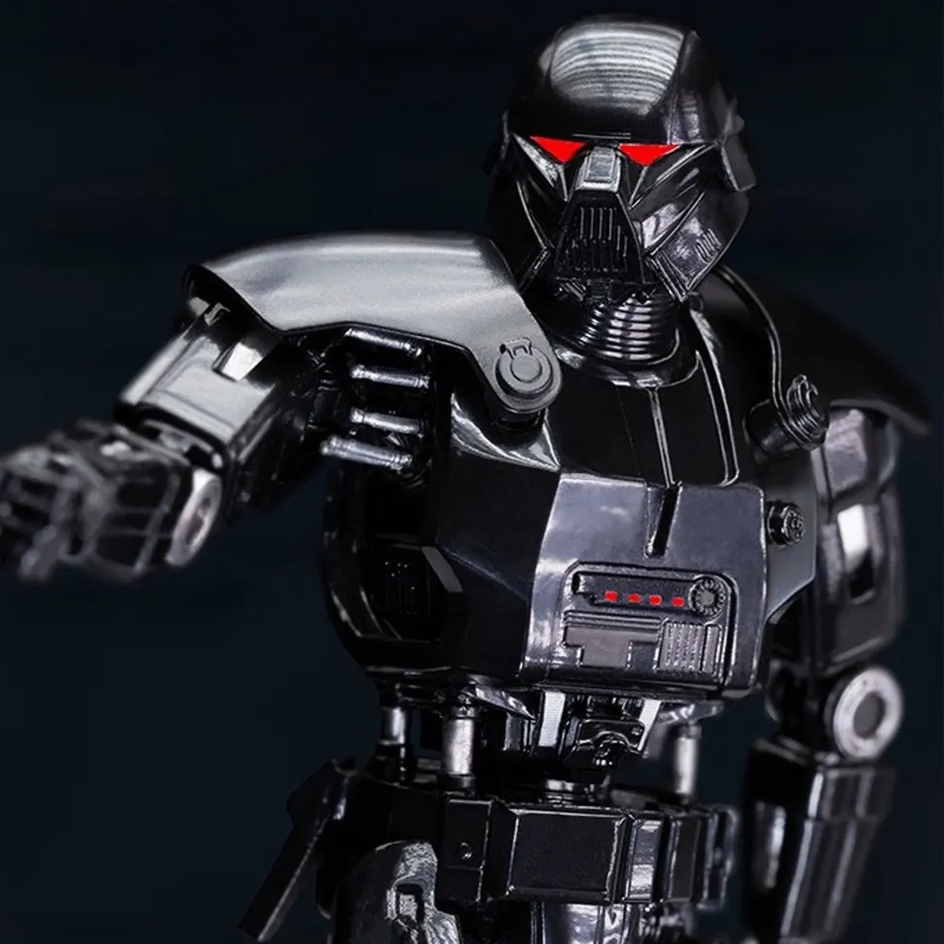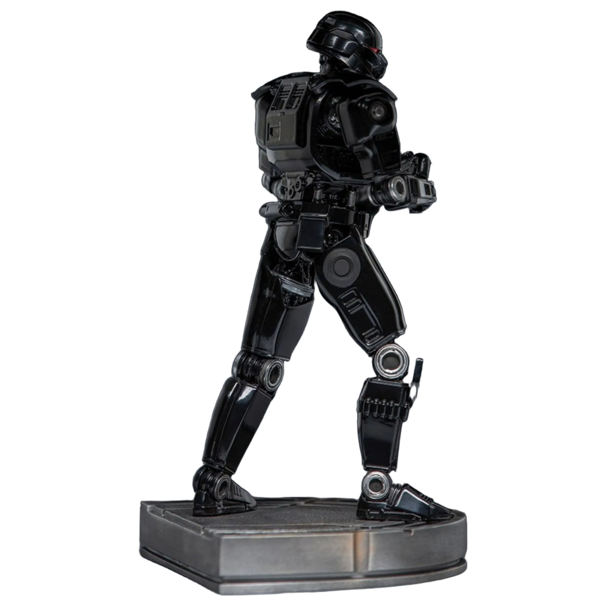 Eine Figur, die in glänzender schwarzer Rüstung gekleidet ist, befindet sich an Bord des Raumschiffes des imperialen Offiziers Moff Gideon, wobei sie ihre roten Fotorezeptorenaugen auf ihr Ziel richtet, ein großes Blastergewehr führt und bereit ist, mit Präzision auf jedes Ziel zu feuern. Iron Studios präsentiert somit seine Statue des gefürchteten "Dark Trooper", eines der effizientesten und mächtigsten imperialen Kampf-Droiden. So wie in der zweiten Staffel der Der Mandalorian-Serie zu sehen, einem Spin-off von Star Wars auf dem Disney+ Streaming-Kanal. Erstmalig auf der virtuellen Veranstaltung Sideshow Con enthüllt, ist die Statue ein Muss für Star Wars-Fans und Sammler. Die Statue verfügt über zwei Paar austauschbare Hände, die Ihnen die Möglichkeit bieten, sie auf verschiedene Weisen zu präsentieren.