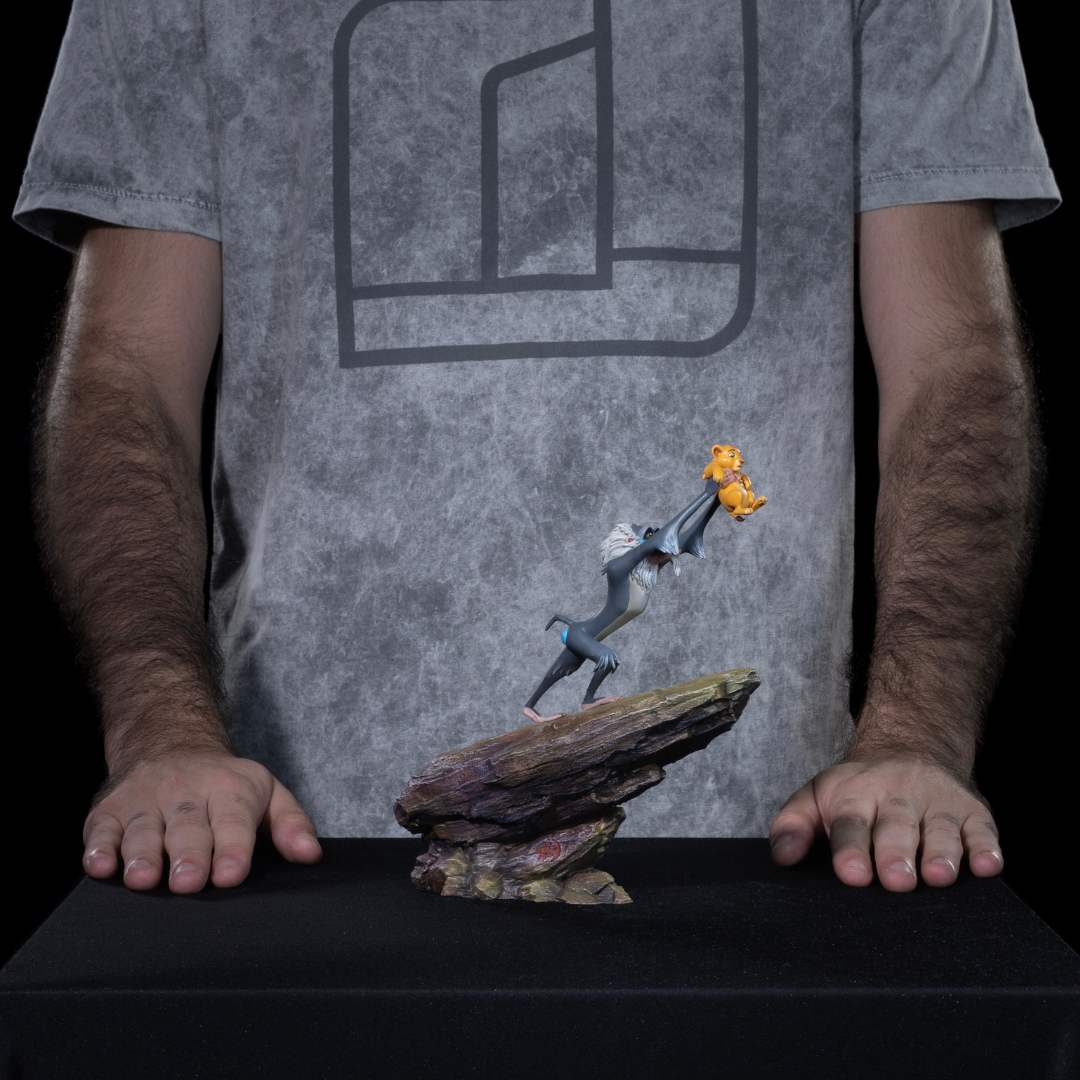 In den Pride Lands, in Afrika, versammeln sich Hunderte von Tieren rund um den Pride Rock, eine Kanzel aus Felsen, die vom Herrscher genutzt wird, um auf die Bitten seiner Untertanen zu antworten und für Feierlichkeiten. Für alle Anwesenden hebt Rafiki, der weise Schamane Mandrill und Berater des Königreichs, in seinen Händen den kleinen Simba, den neugeborenen Prinzen und Erben des Königreichs, und präsentiert ihn den versammelten Tieren. Indem sie eine der eindrucksvollsten Szenen aus dem 32. Walt Disney Animationsklassiker Film nachstellen, präsentieren Iron Studios die Statue „König der Löwen - Disney-Klassiker 100 Jahre – Art Scale 1:10“, einen weiteren ausgezeichneten Klassiker, der vom National Film Registry der U.S. Library of Congress als kulturell, historisch oder ästhetisch bedeutend ausgewählt wurde, und der ihre Reihe von Statuen ergänzt, die 100 Jahre Disney von Iron Studios feiern.