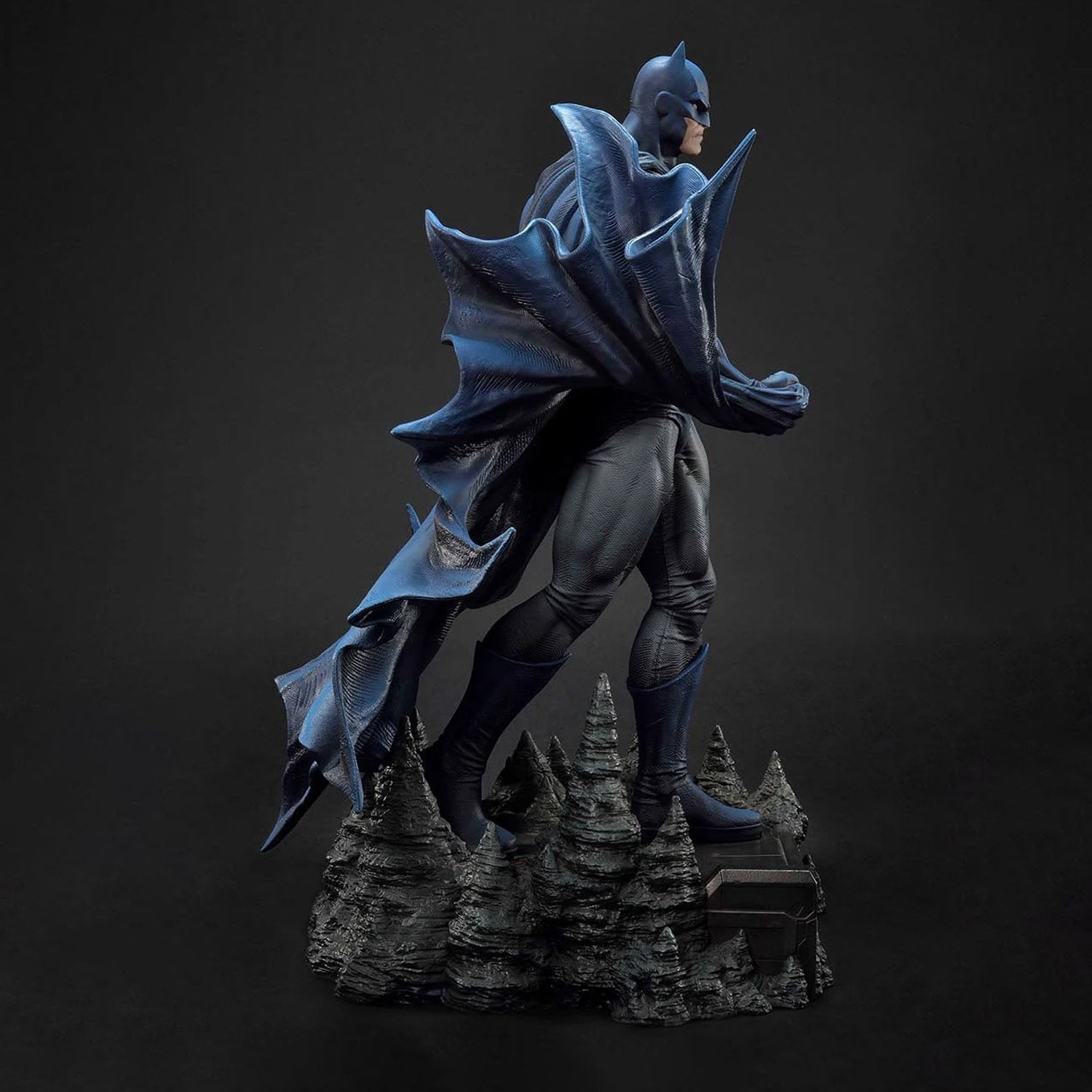 Batman tritt aus der Batcave hervor, sein Umhang weht dramatisch und ruft die dynamischen Szenen aus dem Comic in Erinnerung. Seine Bizeps, die seine breiten Schultern formen; seine Brustmuskeln, die das Bat-Symbol heben; und seine Oberschenkelmuskeln, die seine kraftvolle Beinmuskulatur unterstützen – all diese charakteristischen Merkmale der legendären Zeichnerdarstellung von Batman sind sorgfältig skulpturiert und mit comicartigen Schatten versehen, die die Figur zum Leben erwecken.