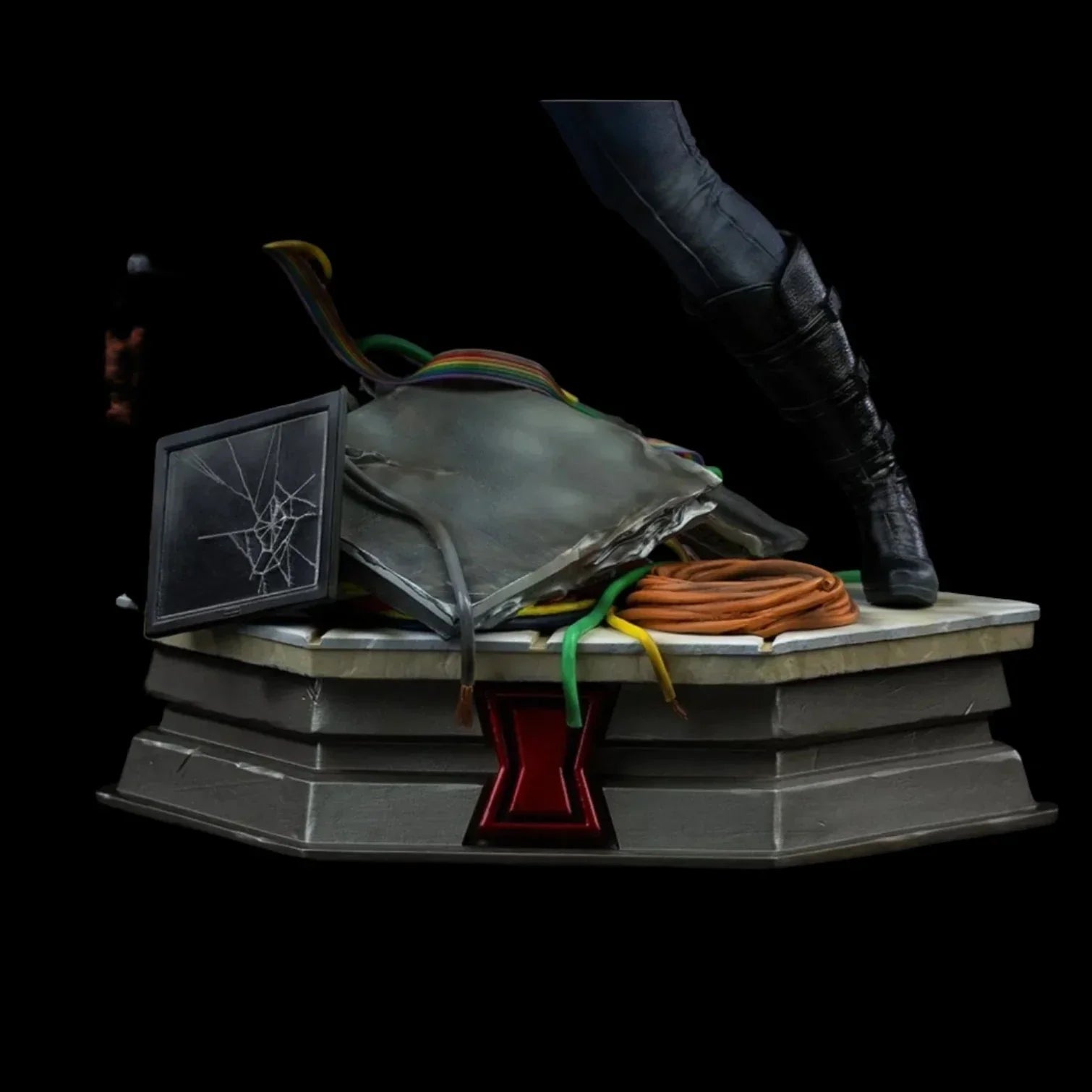 Inspiriert von ihrem ersten Auftritt in den Kinos im Film "Iron Man 2" (2010) erscheint die Spionin von S.H.I.E.L.D., Natasha Romanoff, bereit zum Kampf, mit ihrem langen, lockigen roten Haar, gekleidet in eine taktische Uniform der Agentur in dunklem Blau, die auf die klassischen Kostüme der Comics anspielt, mit einer beeindruckenden Ähnlichkeit zum Gesicht der Schauspielerin Scarlett Johansson, auf einer Trümmerbasis in den Stark-Industrien, die an die Szene erinnert, in der sie sich den Handlangern des korrupten Justin Hammer stellt, der ein Waffenhersteller und Starks Rivale ist, und das Logo der Heldin auf ihrer Gürtelschnalle und auf der Vorderseite der Basis trägt. Auf diese Weise präsentiert Iron Studios stolz seine Originalversion des Avengers im UCM, in der "Schwarze Witwe Statue - Infinity Saga - Legacy Replica 1/4 - Iron Studios", einem der Stücke der Infinity Saga-Label, das von Marvel geschaffen wurde, um die 10 Jahre des gemeinsamen Kino-Universums zu feiern, indem es Ikonen dieser Filme in bemerkenswerten Momenten neu interpretiert, die zur Saga führten, die in "Avengers: Endgame" materialisiert wurde.