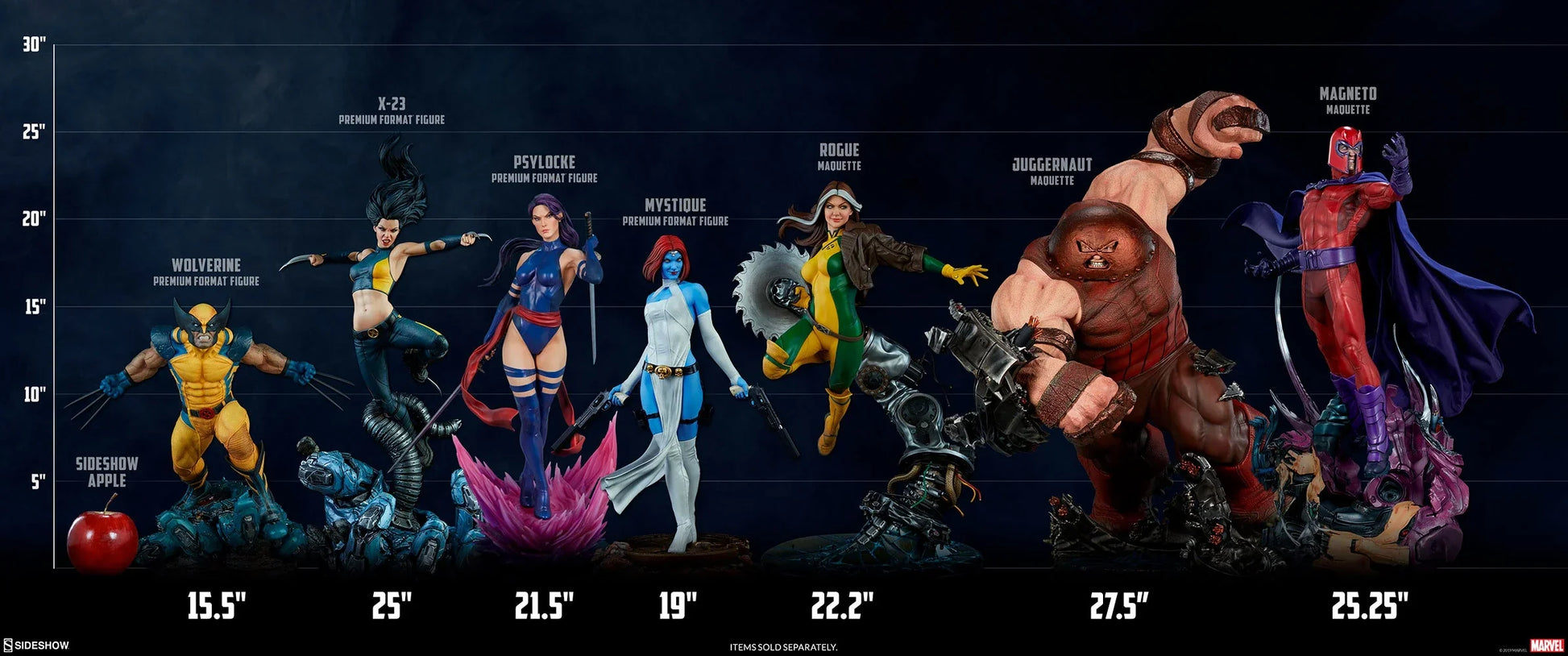 Mit einer beeindruckenden Höhe von 27” tritt der Juggernaut episch in die Schlacht im X-Mansion ein, während er auf einer Danger Room-Themenbasis auftaucht. Trümmer fliegen überall, während der Champion von Cyttorak die Wand zwischen der Schule und der Trainingsstätte einreißt in dieser unglaublich dynamischen Darstellung.