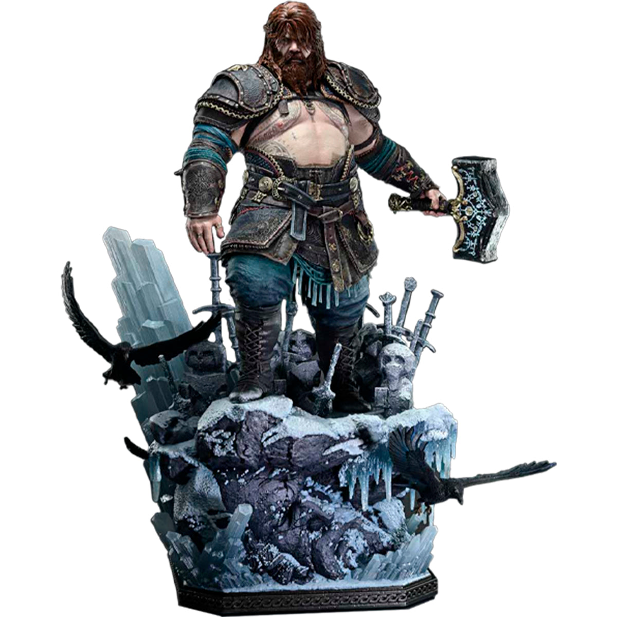 Die Basis, inspiriert von einer gefrorenen Tundra, zeigt Huginn und Muninn im Flug, während eine steinerne Statue von Odin im Hintergrund aufragt und Thors Lasten als Gott von Asgard symbolisiert. Dieses Meisterwerk ist ein Muss für jede God of War Sammlung!